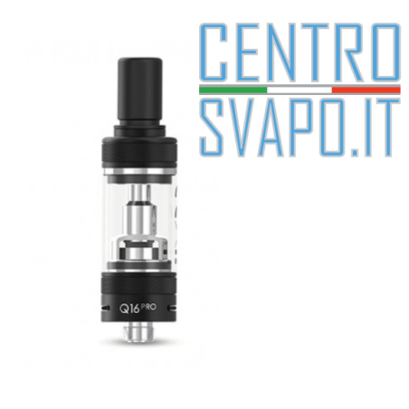 atomizzatore JustFog Q16 con serbatoio da 1,9 ml in vetro pyrex e sistema anti-spitting. Importante: l'atomizzatore Q16 potrebbe esser sostituito gratuitamente con la versione aggiornata Q16 Pro (stessa compatibilità e stesse resistenze di ricambio).